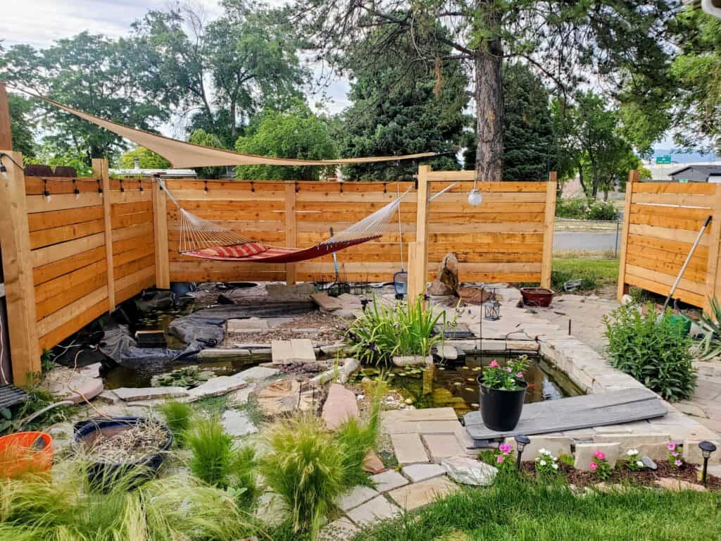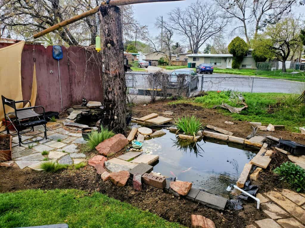 This project started in the very back corner of my girlfriend’s beautiful backyard garden. She had an unused space where she said I could build a “little pond”… lol.